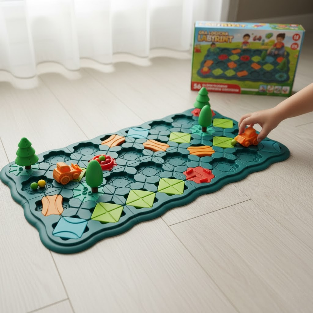 Nasza gra logiczna planszowa labirynt to idealne połączenie zabawy i edukacji. Dzieci z radością wcielą się w rolę konstruktorów, tworząc ścieżki dla dołączonego pojazdu. To doskonała łamigłówka gra logiczna, która rozwija umiejętności koncentracji i pobudza kreatywne myślenie. Każda runda to nowe wyzwanie, zachęcające do poszukiwania optymalnych rozwiązań i doskonalenia umiejętności logicznego myślenia.