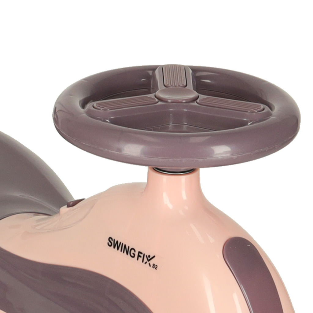 dziecko wprawia jeździk w ruch, poruszając kierownicą na boki. Nie potrzeba