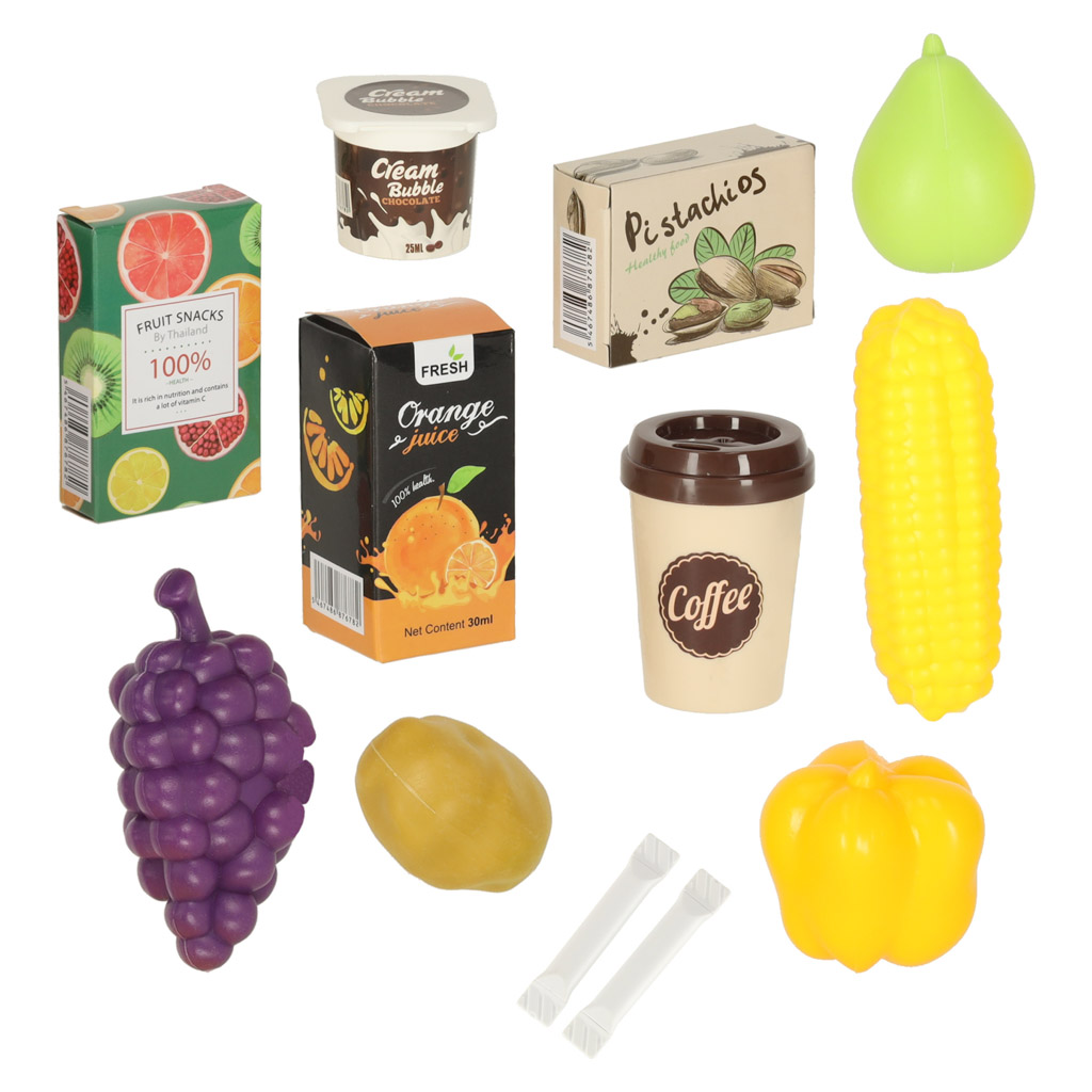 owoce, warzywa, napoje, przekąski, kawa, jogurt