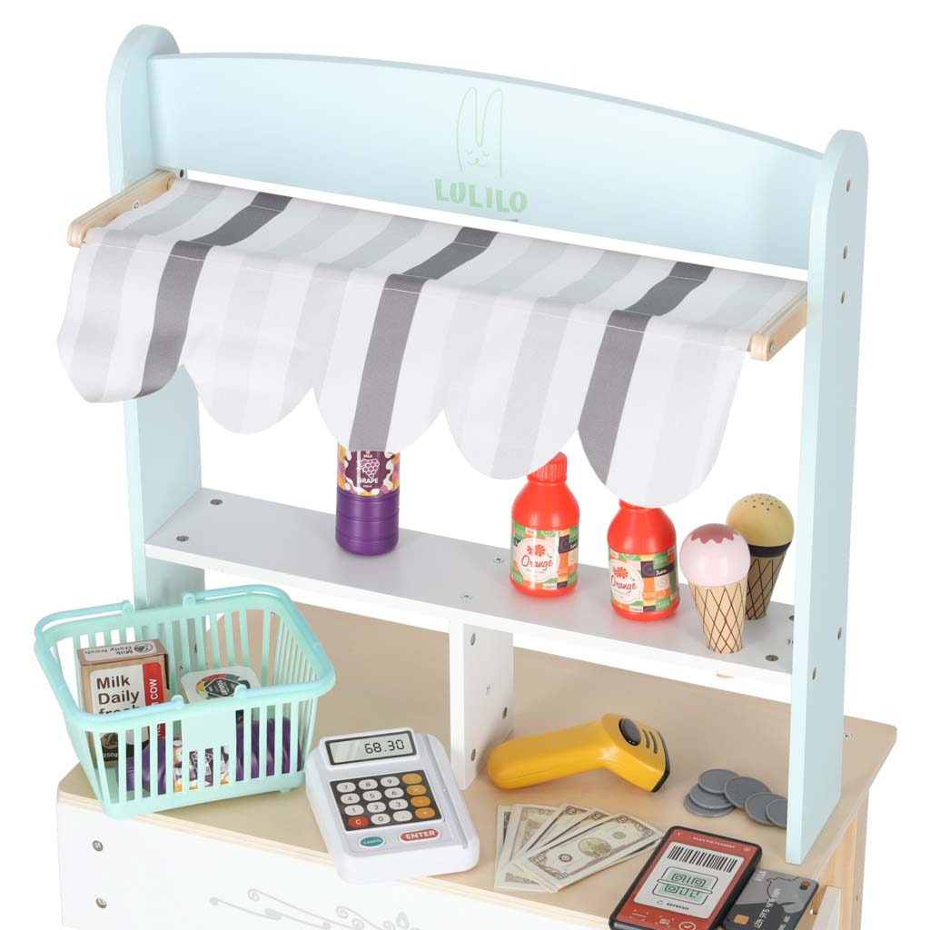 Stragan z interaktywną kasą LULILO Melo to coś więcej niż zabawkowy sklep. Interaktywna kasa i skaner świetnie oddają codzienne sytuacje, a efekty świetlne i dźwiękowe pozwalają mocniej wczuć się w zabawę. Za pomocą marketu można przedstawić dziecku na czym polegają zakupy oraz jak prawidłowo zachować się w sklepie.