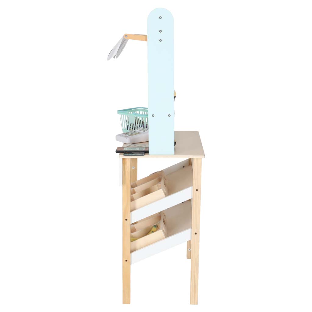Dziecko może kupić produkty spożywcze, które mają różnorodne kształty i faktury, a następnie podsumować zawartość zakupów przy kasie. Można zapłacić kartą lub gotówką, a także zeskanować aplikację na telefonie. Zabawa w sklep pozwala na rozwijanie umiejętności społecznych, a także daje przestrzeń do nauki liczenia.