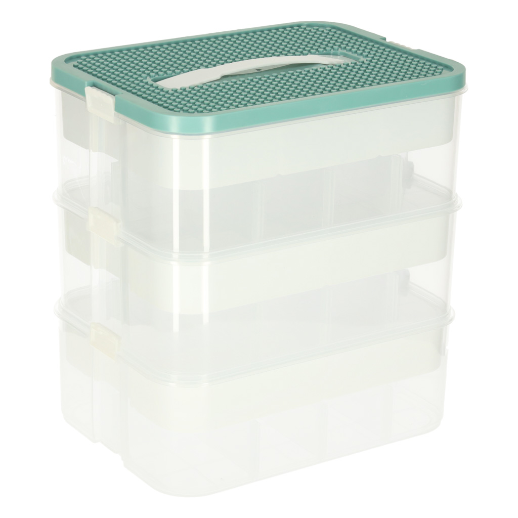 • Duże pudełko z 3 piętrami - które można odłączyć i używać osobno, to wygodne segregowanie klocków