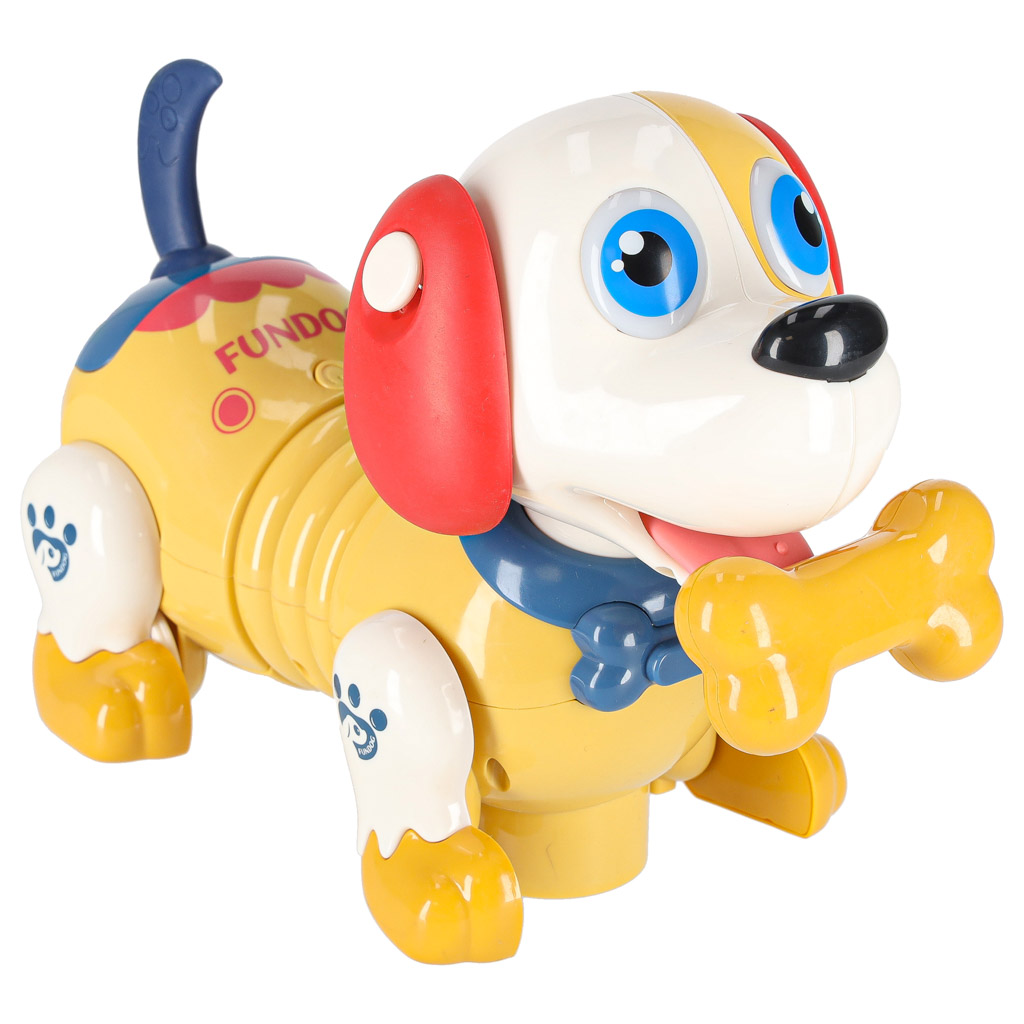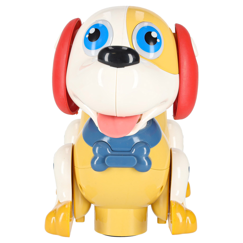 Piesek ma świecące oczy, porusza się i gra muzykę