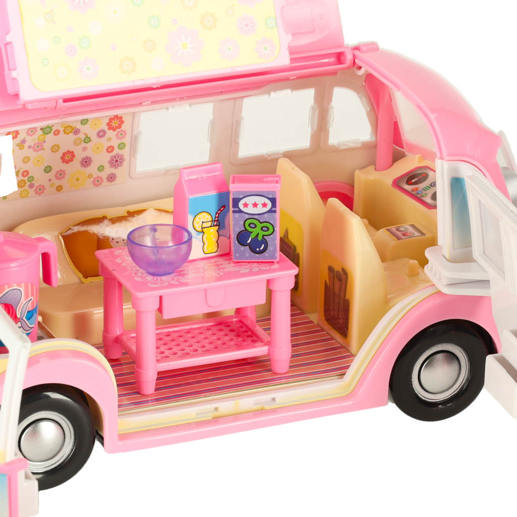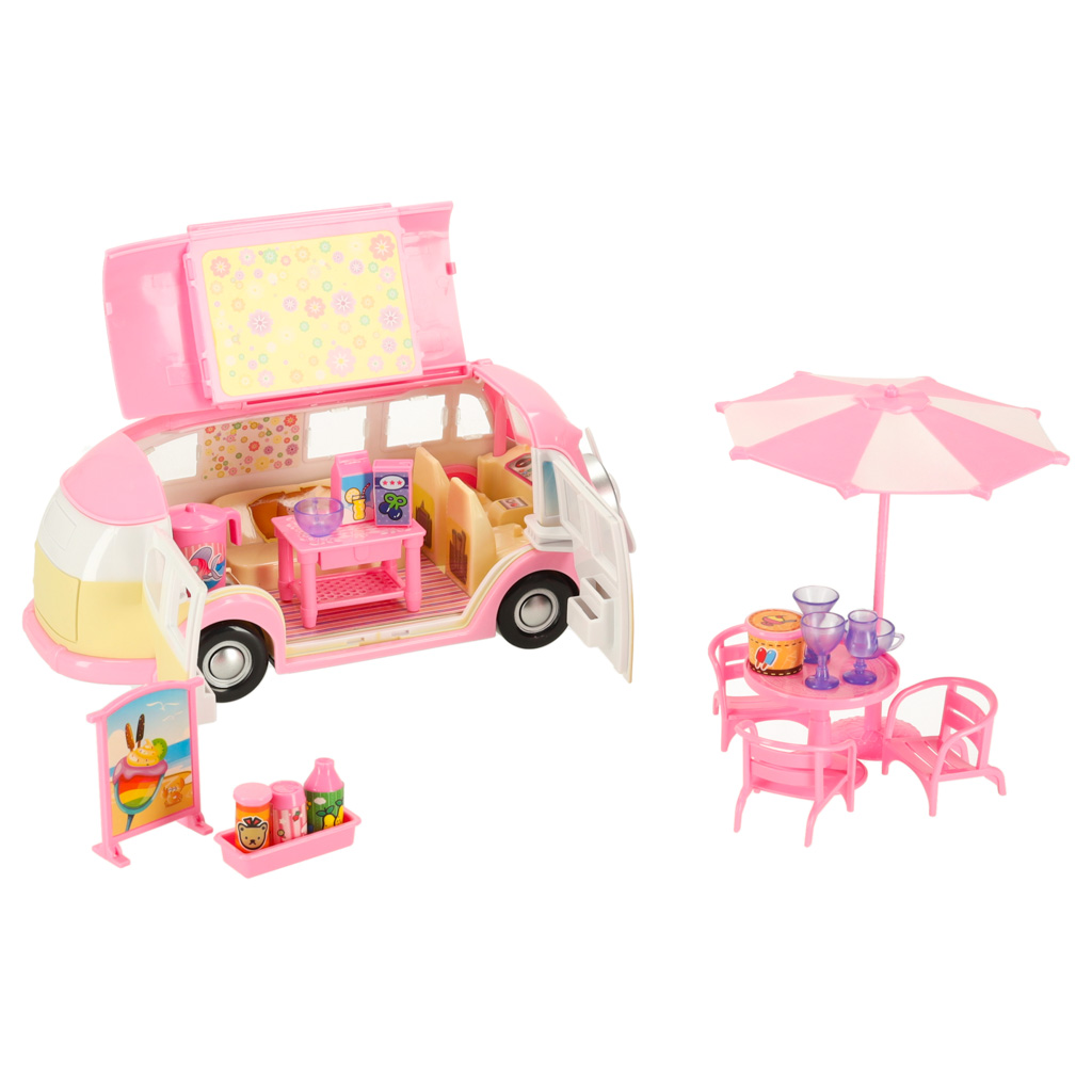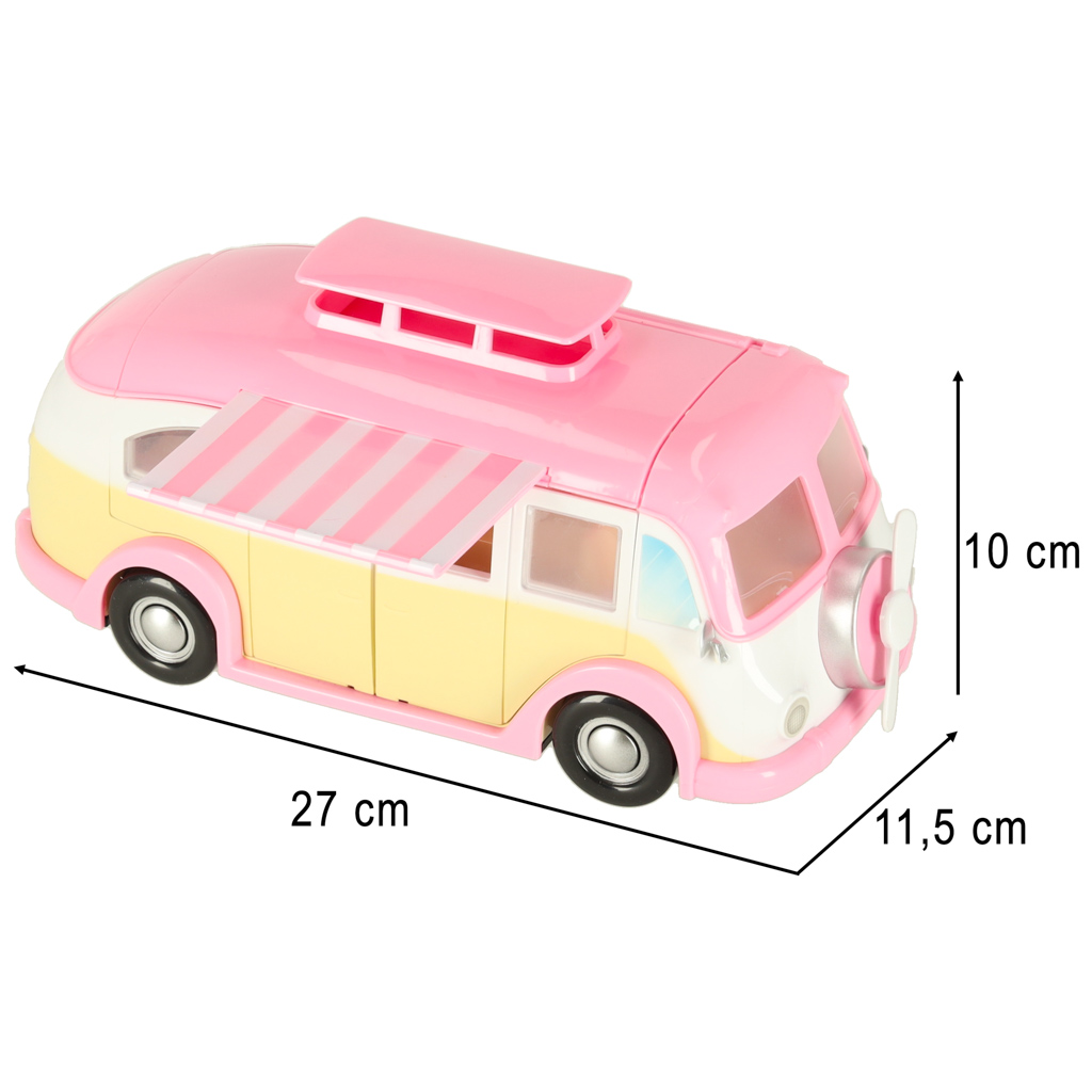 Samochód dla lalek inspiruje spontaniczne pomysły, pozwalając dzieciom prowadzić własny sklep z lodami niczym podczas wakacyjnych podróży. Rozkładany kamper to sprytnie zaprojektowany rozkładany samochód tworzący przestrzeń, w której scenariusze zmieniają się jak w kalejdoskopie. Otwierane drzwiczki kampera dodają realizmu, a idealnie dobrane akcesoria zapewniają wygodę podczas zabawy