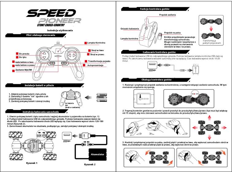 SAMOCHÓD RC SPEED PIONEER STUNT CAR 360