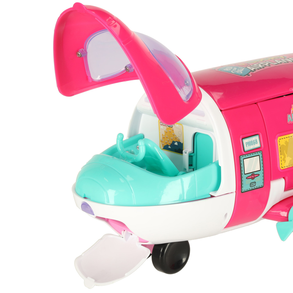 Rozkładany samolot z akcesoriami oraz lalką-podróżniczką pozwala wraz z dzieckiem wyruszyć na pasjonującą przygodę. Lalka ma przygotowaną walizkę – musimy przygotować ją na odprawę oraz zapewnić jej komfortowy pobyt w samolocie. Samolot ma ruchome oraz otwierane elementy, dzięki czemu dziecko może zobaczyć co znajduje się w środku. Zamknięty samolot można wziąć w rękę i wznieść w stronę przestworzy.
